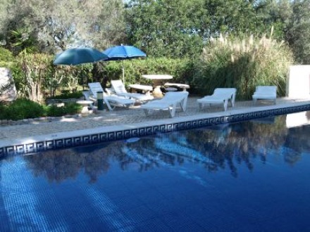 Whilst the recent refurbishment of the interior is modern and fresh, the garden provides a stunning contrast. The mature trees and plants provide a peaceful, private haven to enjoy the summer days with lots of shaded areas to keep out of the midday sun. The dark blue swimming pool lies alongside a stone wall where there is a rustic built-in barbecue and, at the other end, a outside shower. There are stone seats and tables alongside the sunbeds and hidden away at the end of the winding paths.